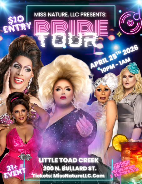 All shows start at 7pm. VIP will be allowed to enter at 6pm. General Admission will be allowed in at 6:15pm. Note that no bags are allowed into the facility other than purses. Purses will be subject to checks by female staff searching for weapons and/or alcohol. None are allowed in. All attendees must come with photo ID and present identification at the door before entering. Photos of every person will be taken before they enter and will be the property of Miss Nature, LLC for our use - photos are taken for added security as photos and names will be provided to authorities as needed. Photos will not be used for any other purpose. THERE ARE NO REFUNDS. If you attend and cause a disturbance, it will be grounds for removal and also not subject to a refund. If choosing to bring a minor to the event, they must be accompanied by a responsible adult at all times. Leaving your child unattended could be grounds for removal from the event. Also note that we try to keep certain entertainers in the each of the shows but individuals do become sick or may no longer be able to perform as scheduled. You are simply purchasing tickets to see a show no particular entertainer so should a Performer you want to see not be able to attend, it is not grounds for a refund.